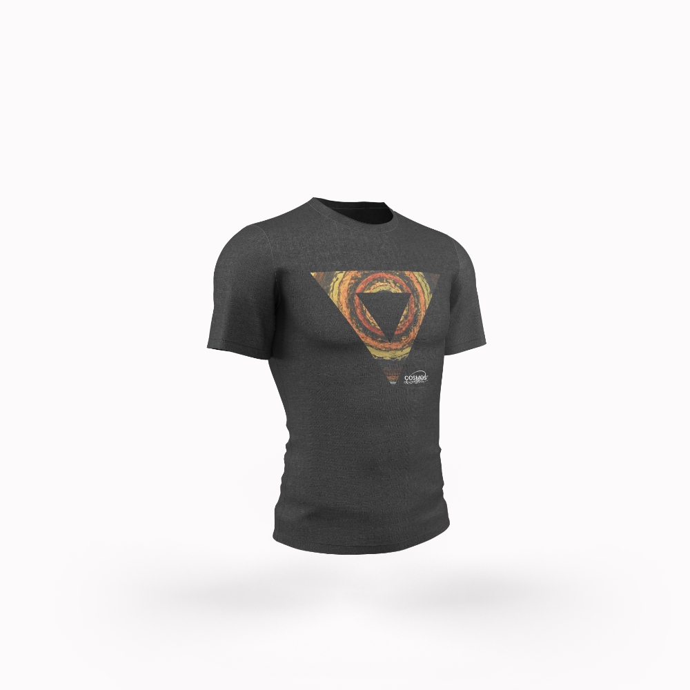 This striking abstract artwork explores the flow of energy and transformation. Vibrant orange and red streaks intertwine with deep blues and blacks, creating a sense of movement and intensity.