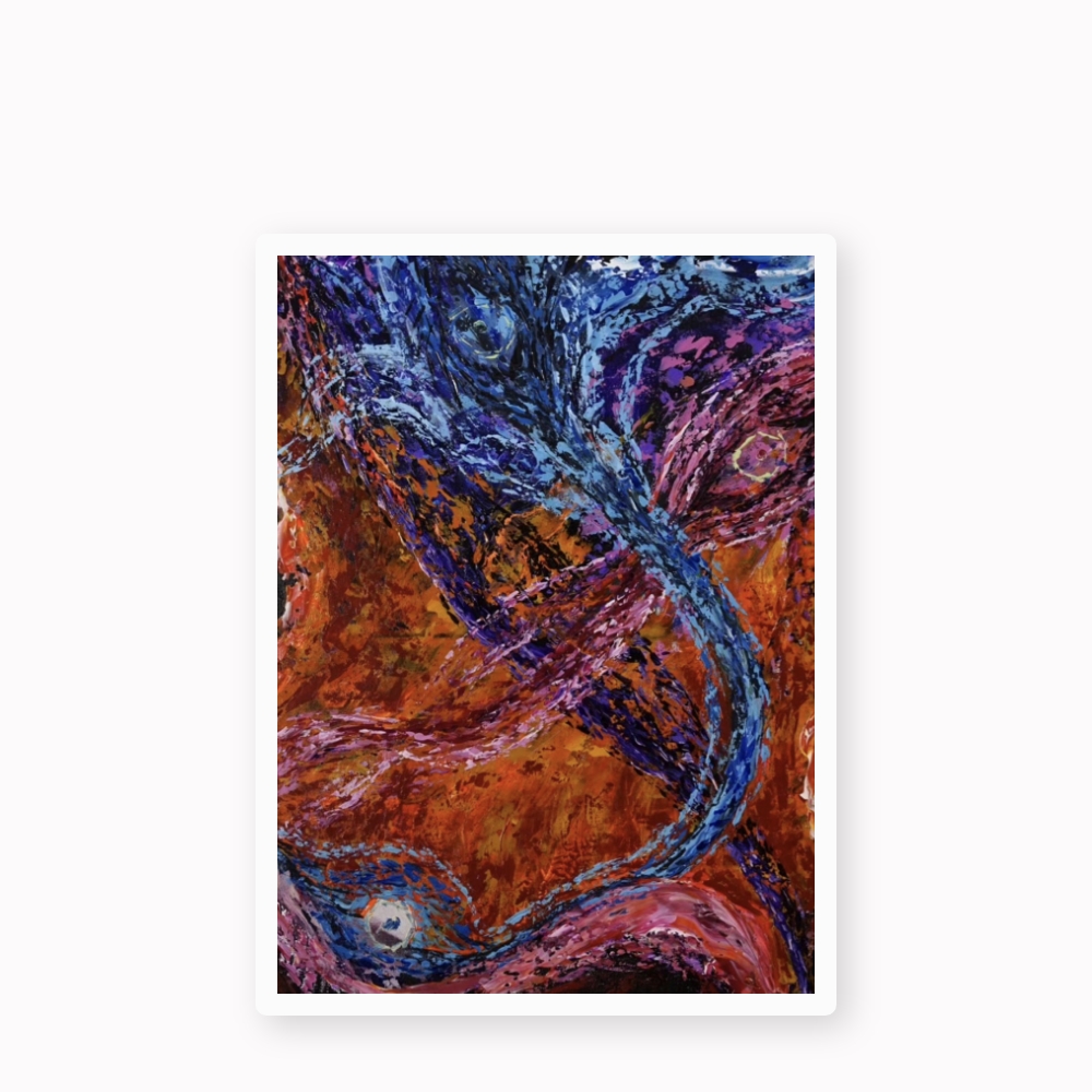 “Life Line is a vibrant and emotive abstract piece that the connection between chaos and harmony. The bold orange stroke cutting through the intricate layers of teal, purple, and earthy tones symbolizes resilience and vitality.